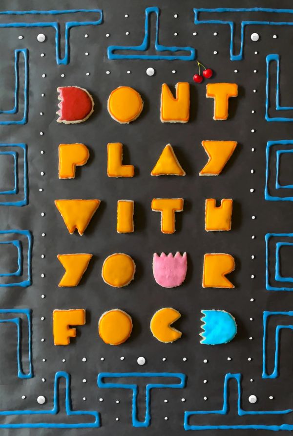 This project entailed taking a quote that pertained to food and developing a typographic poster utilizing that medium. The main inspiration behind the design was Pac-man, a game where the goal is to have the titular character